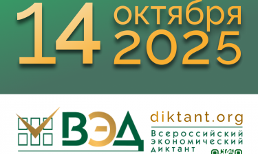 Общероссийская образовательная акция «Всероссийский экономический диктант» состоится 14 октября 2025 г. во всех регионах России, а также в зарубежных странах.